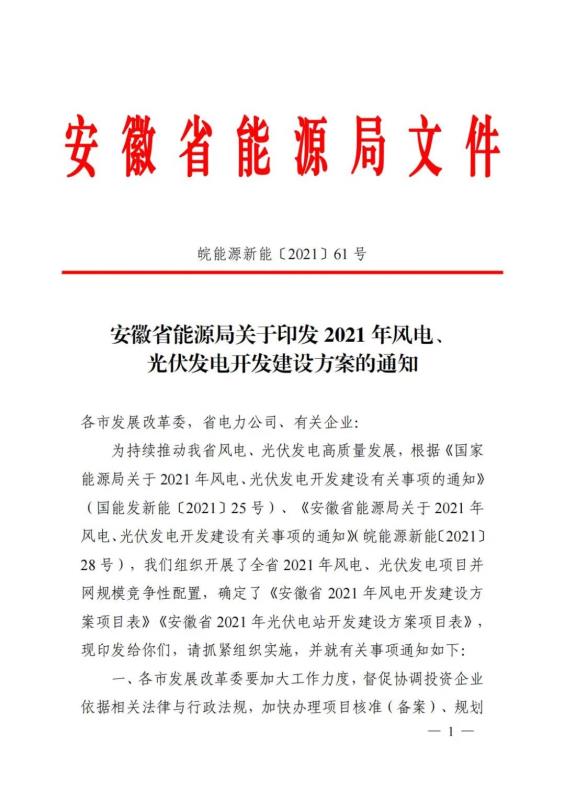 中國儲(chǔ)能網(wǎng)訊:12月6日,安徽省能源局印發(fā)《2021年風(fēng)電、光伏發(fā)電開發(fā)建設(shè)方案》,下發(fā)了6GW項(xiàng)目指標(biāo)。其中: