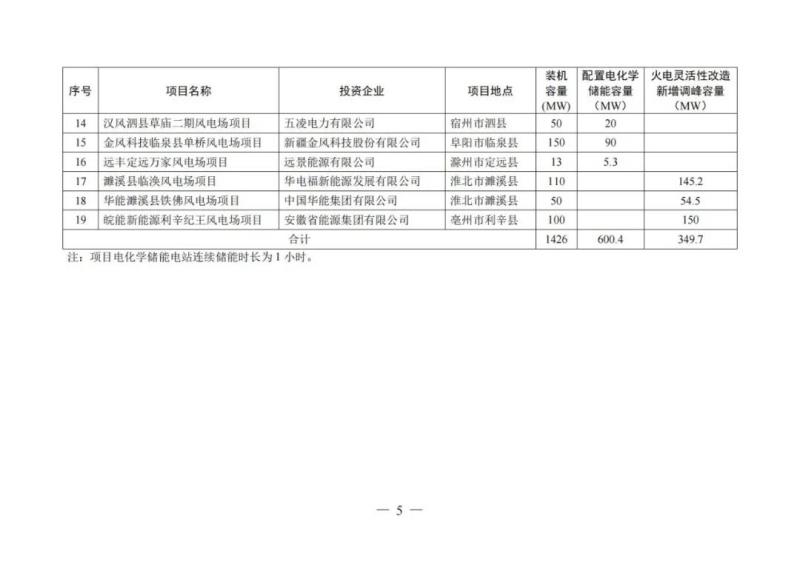 風(fēng)電項(xiàng)目指標(biāo)1426MW,配置40%~98%*1小時(shí)的電化學(xué)儲(chǔ)能,總規(guī)模為600.4MW,火電靈活性改造調(diào)峰容量按1.1~1.5倍配置,共需新增調(diào)峰349.7MW。