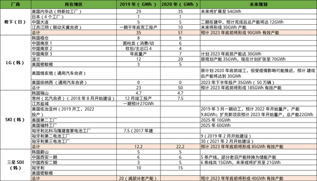 圖表3:海外電池企業(yè)產(chǎn)能擴產(chǎn)規(guī)劃