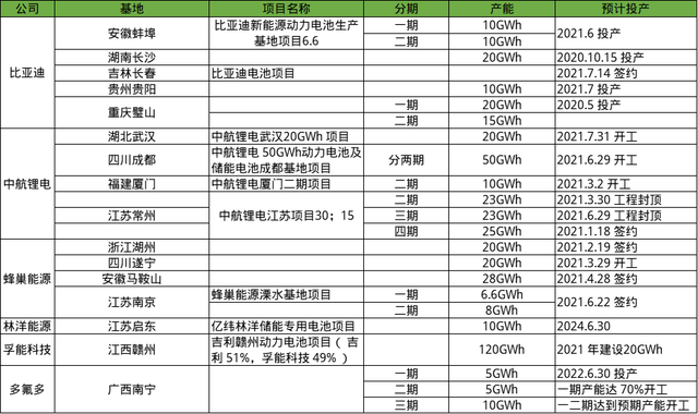 圖表2:國內(nèi)電池企業(yè)產(chǎn)能擴產(chǎn)規(guī)劃