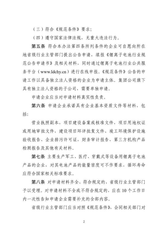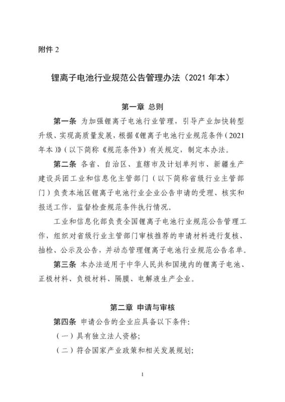 2.鋰離子電池行業(yè)規(guī)范公告管理辦法(2021年本)