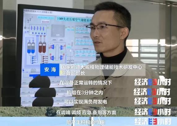 目前,這套10兆瓦先進壓縮空氣儲能系統(tǒng),一天能發(fā)40000度電,相當于3000戶普通家庭一天的用電量。