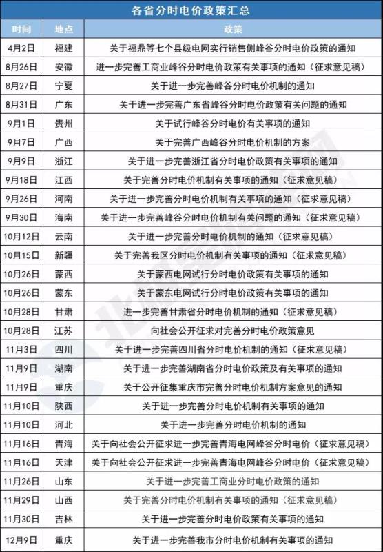 (各省陸續(xù)分時(shí)電價(jià)政策)