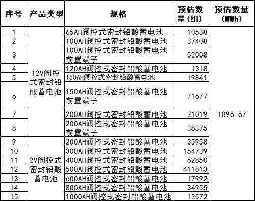 中國儲能網(wǎng)訊:12月10日,國鐵塔股份有限公司、鐵塔能源有限公司及鐵塔智聯(lián)技術(shù)有限公司發(fā)布2021年閥控式密封鉛酸蓄電池產(chǎn)品集中招標(biāo)。項(xiàng)目共采購15種規(guī)格1.097GWh鉛酸蓄電池,5名中標(biāo)人按照40%、28%、17%、10%、5%的份額提供鉛酸蓄電池。最高投標(biāo)限價(jià)為0.885元人民幣/2V.Ah(不含稅),即單價(jià)0.4425元/Wh。