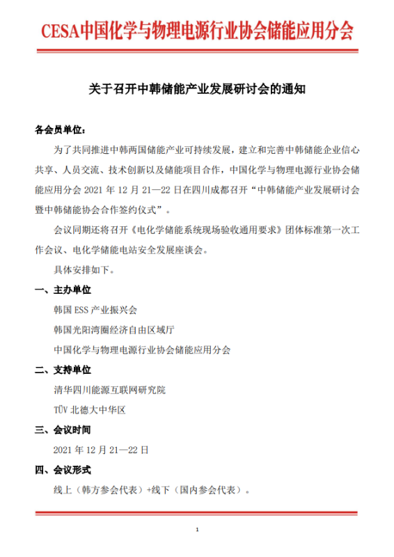 關(guān)于召開中韓儲(chǔ)能產(chǎn)業(yè)發(fā)展研討會(huì)的通知