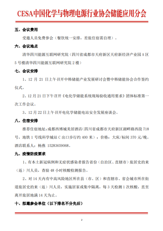 3、12月22日上午召開電化學(xué)儲(chǔ)能電站安全發(fā)展座談會(huì)。