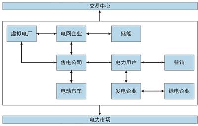 傳統(tǒng)的電力市場由發(fā)電企業(yè)、售電公司、電網(wǎng)企業(yè)和電力用戶組成,對應電力工業(yè)發(fā)、輸、配、售四個環(huán)節(jié)。從我國“十四五”規(guī)劃和電力市場發(fā)展趨勢來看,可再生能源場站、虛擬電廠、儲能、電動汽車四個新興市場主體將加入電力市場。