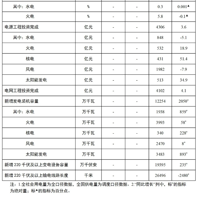 1-11月份,全國(guó)主要發(fā)電企業(yè)電源工程完成投資4306億元,同比增3.6%,其中,水電848億元,同比下降5.1%;太陽(yáng)能發(fā)電513億元,同比增長(zhǎng)34.9%。電網(wǎng)工程完成投資4102億元,同比增長(zhǎng)4.1%。