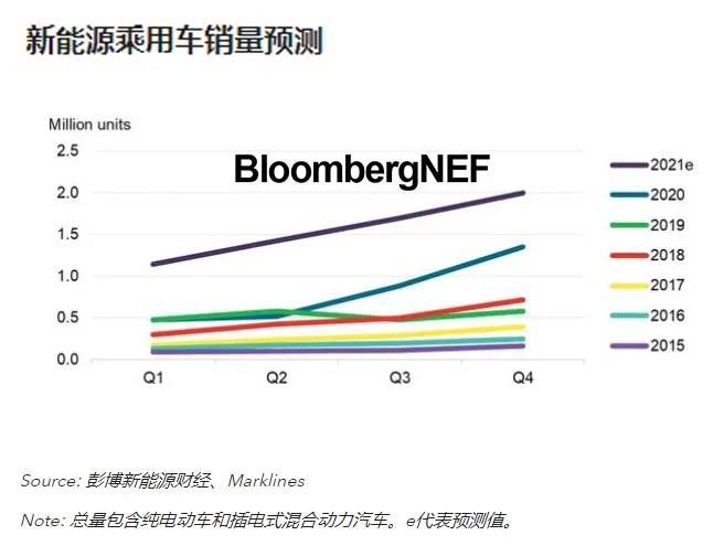 彭博新能源財經預測的2021年全球新能源汽車