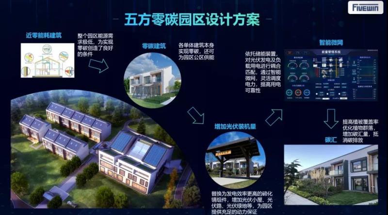 五方零碳建筑及零碳園區(qū)是以中原地區(qū)首個(gè)近零能耗建筑示范項(xiàng)目——五方科技館實(shí)現(xiàn)近零能耗的基礎(chǔ)上,以建筑與光伏深度融合、凈零能耗、凈零碳排放為目標(biāo),采用光伏、儲(chǔ)能、直流、柔性等主要技術(shù)措施,進(jìn)行綜合“零碳”升級(jí)。