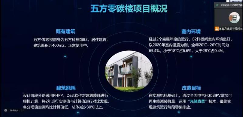 五方項(xiàng)目負(fù)責(zé)人匯報(bào)了項(xiàng)目技術(shù)報(bào)告,對(duì)五方零碳建筑及零碳園區(qū)技術(shù)方案的設(shè)計(jì)目標(biāo)、技術(shù)路徑、關(guān)鍵指標(biāo)進(jìn)行了介紹。