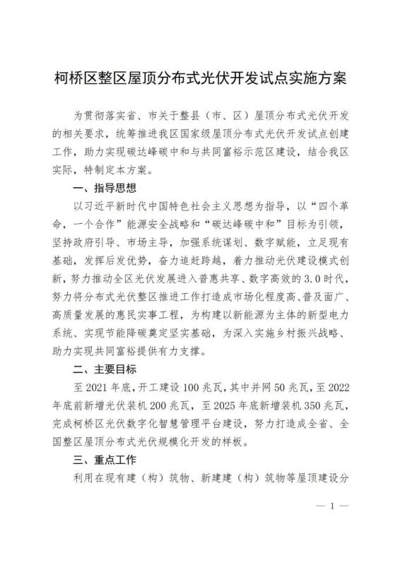 關(guān)于柯橋區(qū)整區(qū)屋頂分布式光伏開發(fā)試點(diǎn)實(shí)施方案的公示