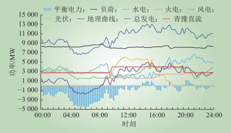 Fig.8 Typical daily power balance curve of Qinghai Grid in the renewable energy enrichment period