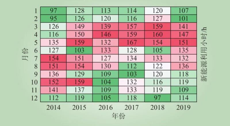 圖4 青海電網(wǎng)新能源利用小時(shí)色階圖