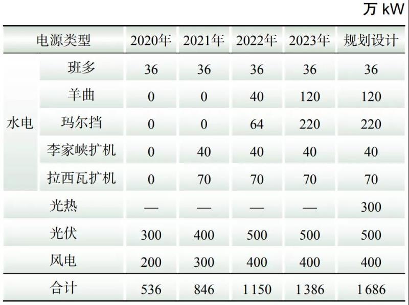 由于多種原因,配套電源建設(shè)和投產(chǎn)存在滯后情況,如表1所示,拉西瓦擴(kuò)機(jī)預(yù)計(jì)于2021年9月投產(chǎn),李家峽擴(kuò)機(jī)預(yù)計(jì)于2021年12月投產(chǎn),羊曲水電站和瑪爾擋水電站機(jī)組預(yù)計(jì)于2022—2023年陸續(xù)投產(chǎn)。光熱項(xiàng)目投產(chǎn)時(shí)間尚不確定[12]。