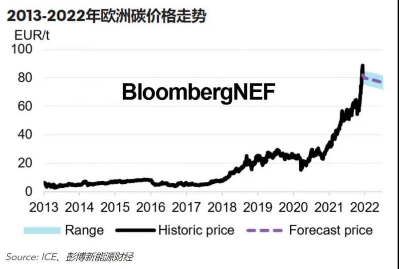 中國儲能網(wǎng)訊:從2021年開始,較高的碳價已被普遍接受。對于歐盟碳排放配額市場而言,2021無疑是意義非凡的一年,價格在12月8日達到了歷史最高點——每噸90歐元以上。歐洲在“Fit for 55”系列立法提案中提出改革方案,加強了投資者對未來市場結構和基本面的樂觀情緒。與此同時,包括機構和散戶在內(nèi)的財務投資者持續(xù)涌入,推動了碳價的上漲。此外,工業(yè)從新冠疫情中復蘇,較高的天然氣價格等因素,也推升了對碳配額的需求。