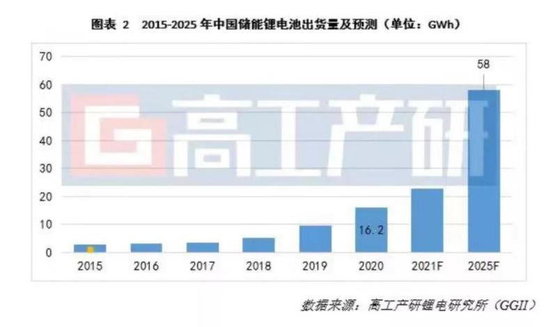 GGII預(yù)計,2025年全球儲能電池出貨量將達(dá)416GWh,未來5年年復(fù)合增長率約為72.8%;中國儲能鋰電池出貨量將達(dá)58GWh,市場規(guī)模超過550億元。其中,作為主要應(yīng)用領(lǐng)域的電力儲能鋰電池“十四五”累計出貨量將超60GWh。