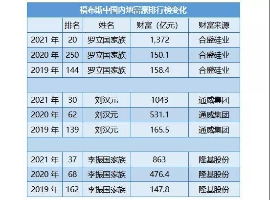 2021年11月,美國(guó)《福布斯》雜志公布了最新一期的中國(guó)內(nèi)地富豪榜單。在今年的富豪榜單中,依靠清潔能源和碳中和相關(guān)業(yè)務(wù)積累財(cái)富的富豪比例從八分之一飆升到了四分之一。而另一個(gè)讓人驚艷的飆升則是原本并不起眼的羅立國(guó)家族,他們不僅在內(nèi)地富豪榜的排名飆升至前20名,其財(cái)富也相比于去年增長(zhǎng)了近10倍。