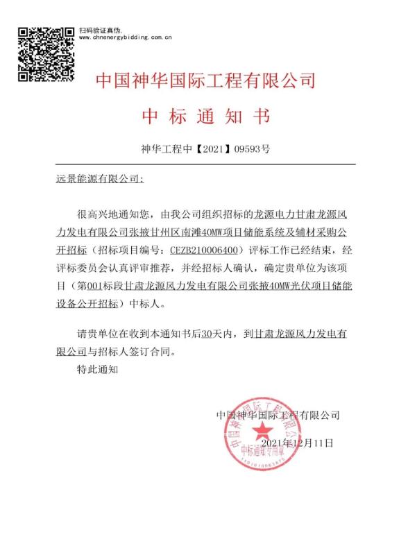 中國儲(chǔ)能網(wǎng)訊:近日,由甘肅龍?jiān)达L(fēng)力發(fā)電有限公司投資建設(shè)的龍?jiān)磸堃锤手輩^(qū)南灘光伏發(fā)電配套儲(chǔ)能項(xiàng)目招標(biāo)結(jié)果公示,遠(yuǎn)景能源中標(biāo)。