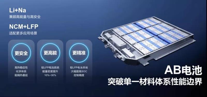 在結(jié)構(gòu)創(chuàng)新方面,我們團(tuán)隊(duì)基于BMS的全新算法,提出并實(shí)現(xiàn)了在單個電池包中布置AB兩種不同電芯的設(shè)計(jì)方案,AB既可以是鐵鋰+三元,也可以是鋰電池+鈉電池,還可以是其他更多種不同組合的混搭。這種設(shè)計(jì)突破了單一材料體系性能邊界,實(shí)現(xiàn)優(yōu)勢互補(bǔ),為客戶提供更全面的解決方案。