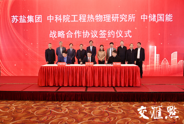 蘇鹽集團(tuán)黨委副書記、總經(jīng)理唐正東,中科院南京未來能源系統(tǒng)研究院副院長張華良、中儲國能公司總經(jīng)理紀(jì)律分別代表合作三方簽署戰(zhàn)略合作協(xié)議。