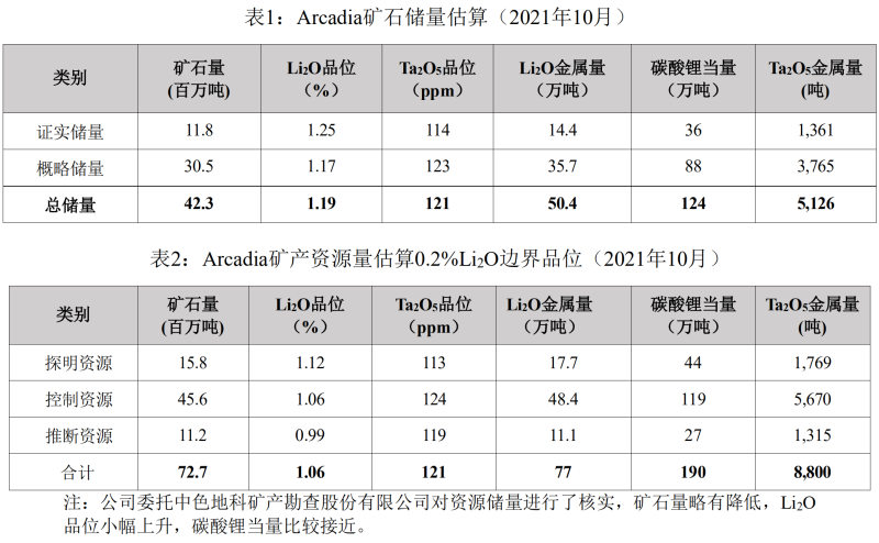 Arcadia項目儲量、資源量 圖片來源:華友鈷業(yè)公告截圖