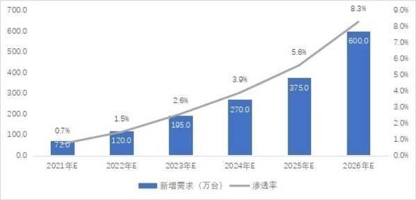 便攜式儲能在其他領(lǐng)域的新增需求及滲透率預(yù)測:萬臺