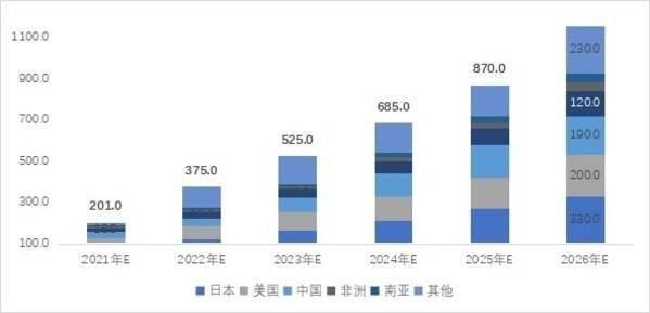 從不同地區(qū)需求數(shù)量來看,戶外活動領(lǐng)域主要以美國為主,隨著市場滲透率的提升,預(yù)計2026年,美國戶外活動新增需求將達(dá)到600萬臺,中國市場逐漸提升,達(dá)到260萬臺左右,歐洲市場達(dá)到165萬臺左右,而日本由于戶外活動和應(yīng)急領(lǐng)域有部分共同需求,因此單獨在戶外領(lǐng)域的新增需求僅130萬臺左右。