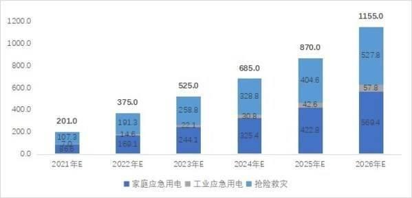 以災(zāi)害高發(fā)的日本為例,2018年9月發(fā)生的北海道東部地震致使整個北海道停電,停電導(dǎo)致的直接經(jīng)濟(jì)損失超1,500億日元2018年9月臺風(fēng)“潭美”導(dǎo)致沖繩縣內(nèi)超過70,000戶家庭停電便攜儲能產(chǎn)品能解決災(zāi)害缺電、停電、應(yīng)急救援等電力短缺問題,并能與太陽能板組合形成小型太陽能發(fā)電系統(tǒng),在災(zāi)后電網(wǎng)癱瘓及毀壞情況下,為災(zāi)后生活實現(xiàn)持續(xù)離網(wǎng)發(fā)電,保障災(zāi)民的基本生活需求,2019年日本防災(zāi)協(xié)會便已將便攜儲能產(chǎn)品列為防災(zāi)安全物資認(rèn)證產(chǎn)品未來,隨著應(yīng)急備用電源的逐步普及以及便攜儲能產(chǎn)品對小型燃油發(fā)電機(jī)的逐步替代,便攜儲能產(chǎn)品在應(yīng)急備災(zāi)市場的需求空間將更加廣闊預(yù)計到2026年,全球應(yīng)急領(lǐng)域新增需求將達(dá)到1155萬臺。