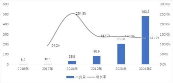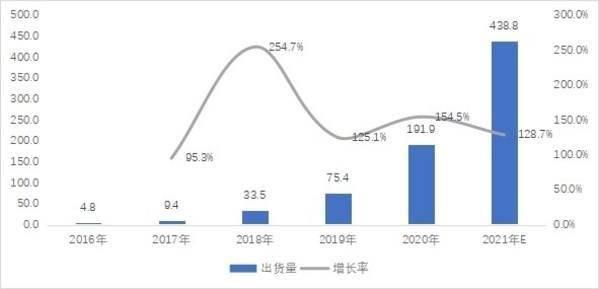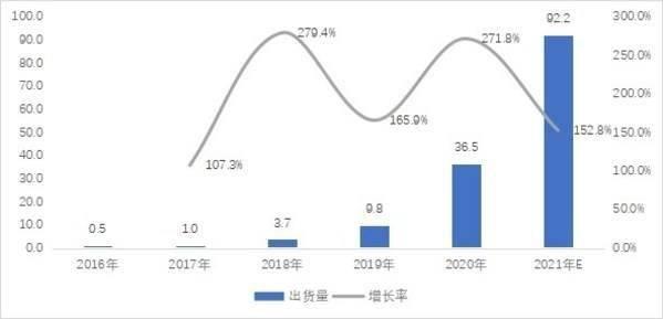 2016-2021年全球便攜式儲能出貨量:萬臺