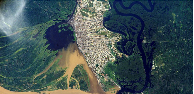 美國宇航局衛(wèi)星圖像顯示的位于亞馬遜河流域的伊基托斯都市區(qū)