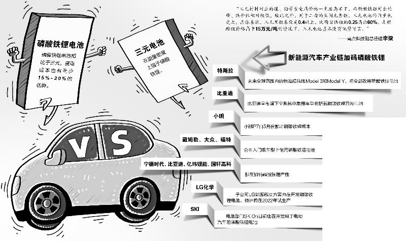 數(shù)據(jù)快速增長的背后,是產(chǎn)業(yè)鏈對磷酸鐵鋰路線的競相追逐。車企方面,特斯拉去年就在國產(chǎn)Model 3上搭載了磷酸鐵鋰電池,今年7月又推出配備磷酸鐵鋰電池的Model Y標(biāo)準(zhǔn)續(xù)航版,特斯拉CEO馬斯克更在今年10月透露,未來全球范圍內(nèi)的標(biāo)準(zhǔn)續(xù)航版Model 3和Model Y,將全部改用磷酸鐵鋰電池;4月,比亞迪宣布旗下全系純電乘用車型將搭載磷酸鐵鋰刀片電池;小鵬P7自5月份推出磷酸鐵鋰版本。除此之外,戴姆勒、大眾、福特都已明確表示,會在入門級車型上使用磷酸鐵鋰電池。
