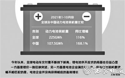 據(jù)《證券日報》記者了解,2021年1月份至10月份,全球動力電池的裝機量達到225GWh,同比增長116%。其中,我國動力電池裝車量為107.5GWh,同比增長168.1%。