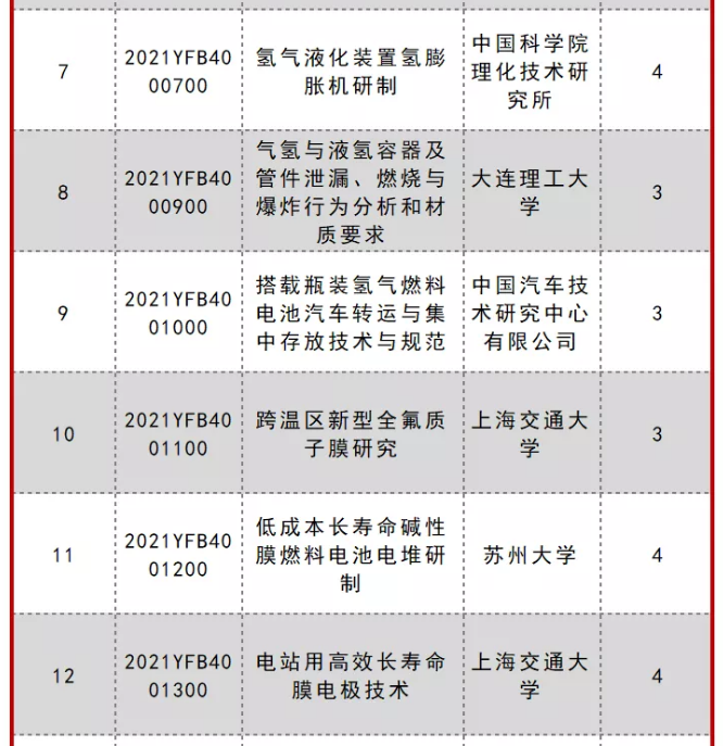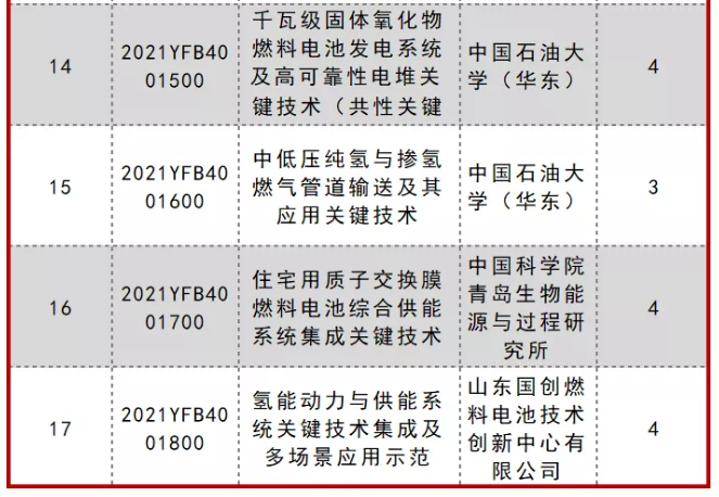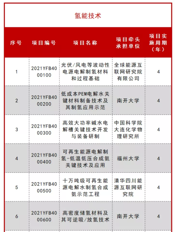 2021年度(十四五氫能技術(shù))國家重點研發(fā)計劃重點專項立項公示進展