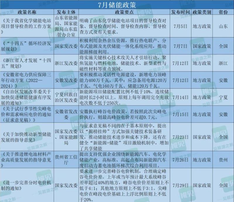 第一彈重磅利好是從國家層面首次提出裝機規(guī)模目標。7月23日,國家發(fā)展改革委、國家能源局正式聯(lián)合發(fā)布《國家發(fā)展改革委 國家能源局關(guān)于加快推動新型儲能發(fā)展的指導(dǎo)意見》,明確到2025年,我國新型儲能裝機規(guī)模達3000萬千瓦以上。