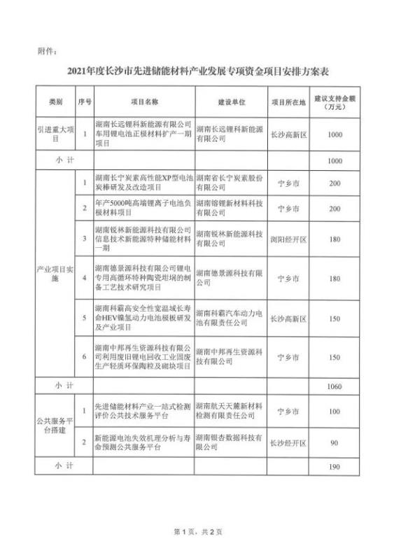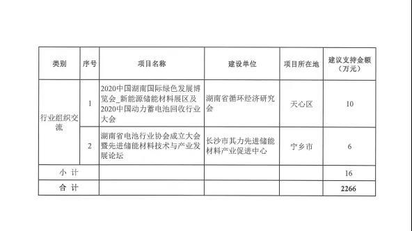 湖南長(zhǎng)遠(yuǎn)鋰科新能源有限公司、湖南省長(zhǎng)寧炭素股份有限公司、 湖南镕鋰新材料科技有限公司、湖南銳林新能源科技有限公司、 湖南德景源科技有限公司、湖南科霸汽車動(dòng)力電池有限責(zé)任公司、湖南省循環(huán)經(jīng)濟(jì)研究會(huì)等11家企業(yè)獲得支持資金。