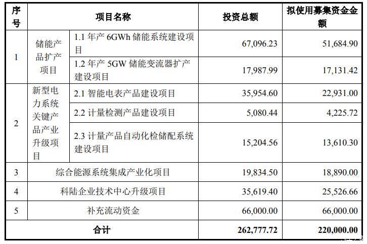 具體來(lái)看,科陸電子年產(chǎn)6GWh儲(chǔ)能系統(tǒng)建設(shè)項(xiàng)目擬投入6.71億元,以募集資金投入5.17億元,其余以自有資金投入。該子項(xiàng)目產(chǎn)品主要包括面向電力市場(chǎng)的全功能獨(dú)立儲(chǔ)能電站系統(tǒng)、能量型儲(chǔ)能系統(tǒng)、功率型儲(chǔ)能系統(tǒng)、通信基站電源系統(tǒng)、移動(dòng)儲(chǔ)能系統(tǒng)、分布式小儲(chǔ)能系統(tǒng)、儲(chǔ)能專用電池管理系統(tǒng)BMS、儲(chǔ)能能量管理系統(tǒng)EMS等,可廣泛用于電網(wǎng)側(cè)緩解電網(wǎng)高峰負(fù)荷供電壓力、延緩輸配電擴(kuò)容升級(jí)、應(yīng)急供電保障;電源側(cè)火電廠聯(lián)合調(diào)頻、新能源配套儲(chǔ)能;分布式儲(chǔ)能聚集虛擬電廠、共享儲(chǔ)能、無(wú)電地區(qū)微電網(wǎng)、動(dòng)力電池梯次利用等領(lǐng)域。