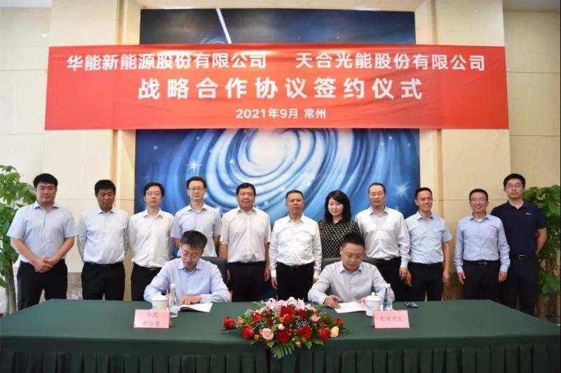 2021年9月16日,王力軍董事長率華能新能源總部及區(qū)域公司相關(guān)領(lǐng)導(dǎo)一行到訪常州,考察天合光能總部及戶用分布式樣板項目,并與天合光能高紀凡董事長暢談雙方未來合作。期間,在雙方董事長見證下,天合智慧分布式能源有限公司與華能新能源股份有限公司簽署戰(zhàn)略合作協(xié)議。雙方約定在分布式光伏領(lǐng)域深化業(yè)務(wù)合作,打造可持續(xù)發(fā)展戰(zhàn)略伙伴關(guān)系。