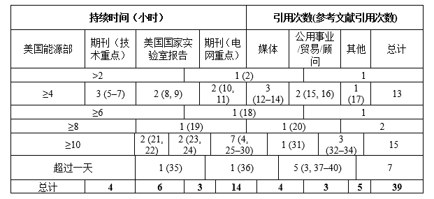 表1提供了對39份報(bào)告和文獻(xiàn)綜述的總結(jié),這些文件用數(shù)值定義了長時(shí)儲能持續(xù)時(shí)間,通常以小時(shí)表示。在這時(shí)排除了一些別技術(shù)開發(fā)商發(fā)布或推廣的定義,沒有包含詳細(xì)討論長時(shí)儲能系統(tǒng)(LDES)但沒有明確定義持續(xù)時(shí)間的文件。