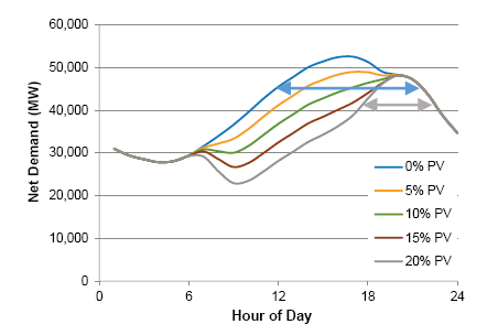 圖2.更長的凈負載峰值會降低儲能系統(tǒng)的容量信用(紐約州示例)