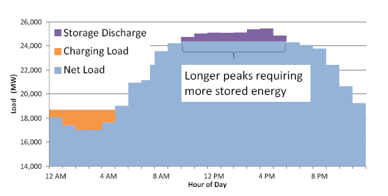 在這一示例中,隨著儲能部署的增加,維持高容量信用需要從4小時持續(xù)時間到最終10小時持續(xù)時間的系統(tǒng)過渡。