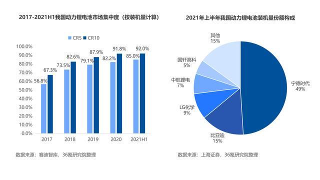 2020年以來,以寧德時(shí)代、比亞迪、中航鋰電、國軒高科等為代表的領(lǐng)軍企業(yè)加快高鎳低鈷電池、硅負(fù)極材料電池、“永不起火”電池等新技術(shù)研制,競爭優(yōu)勢明顯。2020年,我國動(dòng)力電池CR5和CR10分別達(dá)到82.2%和91.8%,相較2019年分別提升3.1%、3.9%。未來,隨著頭部企業(yè)技術(shù)創(chuàng)新、產(chǎn)品擴(kuò)產(chǎn),我國動(dòng)力電池市場集中度有望進(jìn)一步提升。