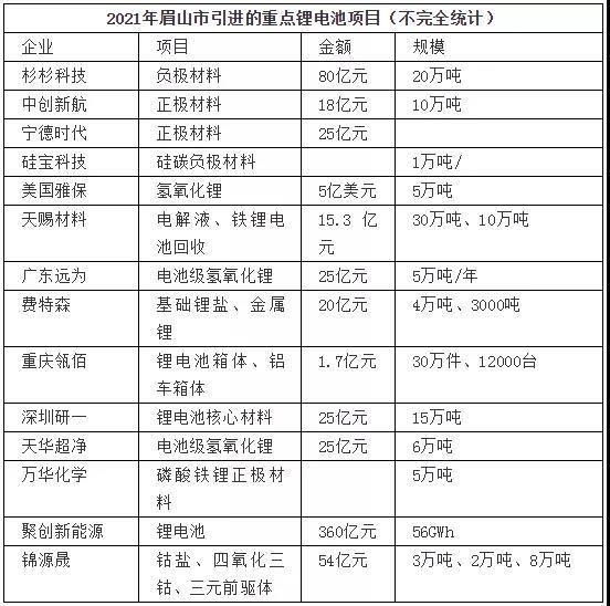 電池中國(guó)不完全統(tǒng)計(jì)了2021年眉山市引進(jìn)的另一些重點(diǎn)項(xiàng)目: