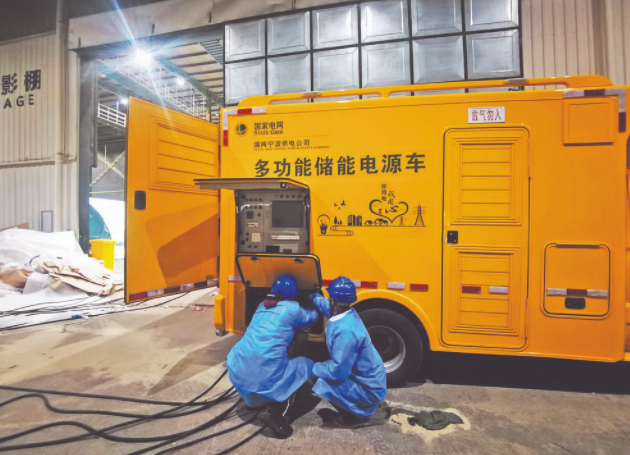 供電員工為博地影視基地氣膜方艙實(shí)驗(yàn)室接入多功能儲(chǔ)能電源車。連志祥 攝