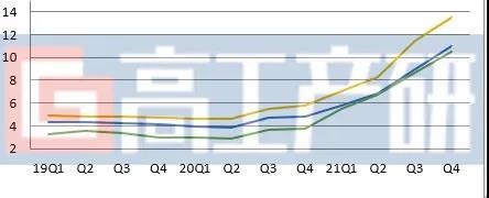 2019-2021Q4中國(guó)電解液季度均價(jià)(萬(wàn)元/噸)