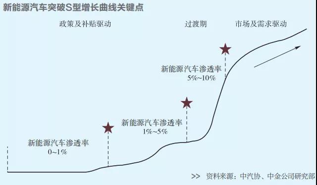 談到增長,往往離不開S型曲線。十九世紀(jì)末,法國社會學(xué)家塔爾德觀察到,一個新思想的采納率在時間中遵循一種S型曲線,即開始時緩慢、中期加快、后期平緩。S型曲線逐漸廣泛應(yīng)用于社會學(xué)、生物統(tǒng)計學(xué)、臨床、數(shù)量心理學(xué)、市場營銷等多個領(lǐng)域。汽車行業(yè)普遍認(rèn)為,全球的汽車電動化已經(jīng)突破臨界點(diǎn),進(jìn)入了S型曲線的陡峭增長期,將呈現(xiàn)爆發(fā)趨勢,2022年的新車滲透率將突破20%??紤]到2021年新能源汽車受到了電池供應(yīng)受限、芯片供應(yīng)短缺以及產(chǎn)能受限等因素影響,而2022年這些因素將逐漸緩解,我國新能源汽車銷量預(yù)計為500萬~600萬輛。