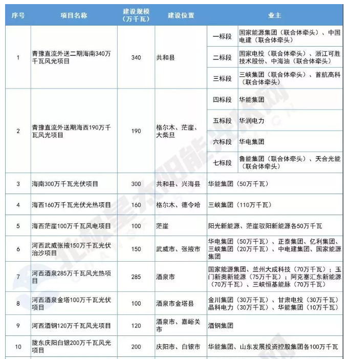 從各項(xiàng)目業(yè)主詳情來(lái)看,聯(lián)合開(kāi)發(fā)成為大基地項(xiàng)目開(kāi)發(fā)的主流,尤其是大多數(shù)基地項(xiàng)目都是由各地聚集風(fēng)電、光伏項(xiàng)目的組合而來(lái)。因此大多數(shù)基地項(xiàng)目,都有多家發(fā)電集團(tuán)參與,部分特高壓外送基地項(xiàng)目還是以企業(yè)聯(lián)合體牽頭形式中標(biāo)。