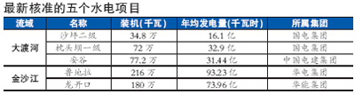 據(jù)悉,這五個(gè)大型水電的項(xiàng)目都已拿到路條,有些已在“十一五”期間開工建設(shè),其中部分機(jī)組明年就可發(fā)電。