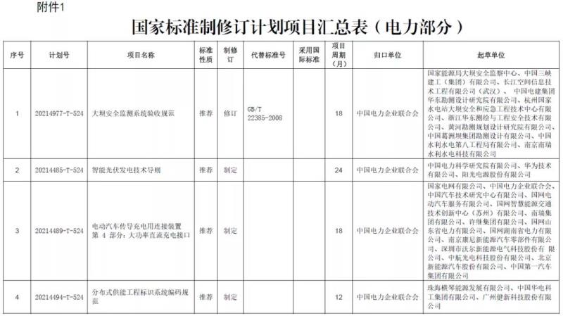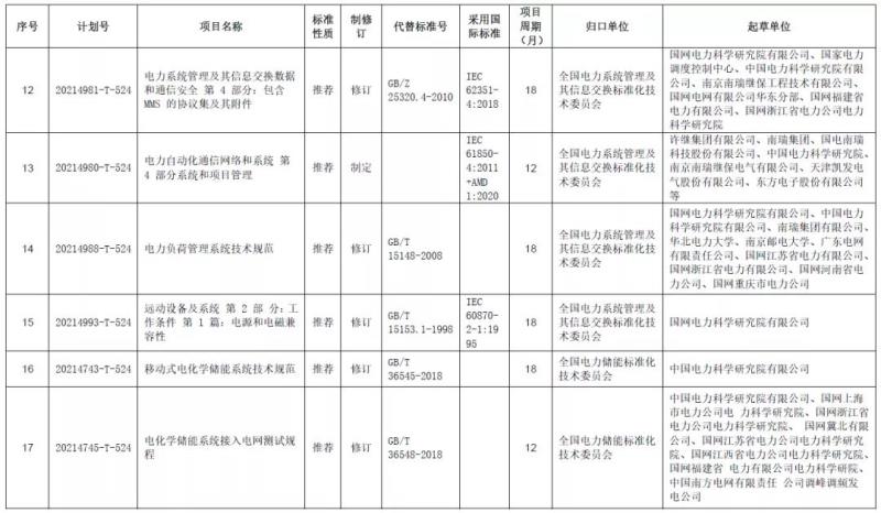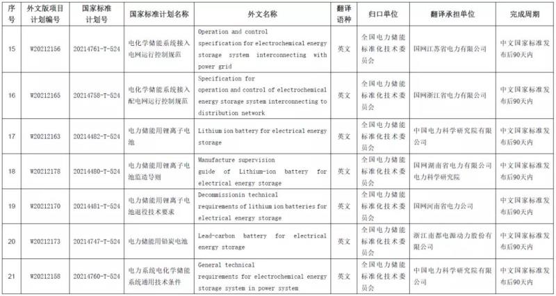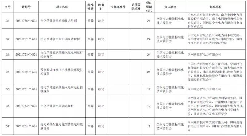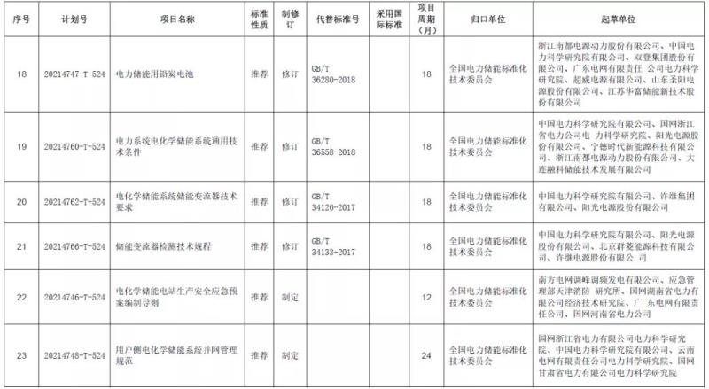 儲(chǔ)能等多項(xiàng)國家標(biāo)準(zhǔn)制修訂計(jì)劃項(xiàng)目匯總表