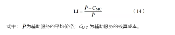 價(jià)格是反映市場(chǎng)勢(shì)力的一個(gè)重要指標(biāo),但在不同市場(chǎng)中,甚至是同一市場(chǎng)的不同時(shí)段,價(jià)格都會(huì)發(fā)生變化。一個(gè)較好的方法是將電價(jià)與發(fā)電邊際成本相比較。如果價(jià)格明顯高于邊際成本,則說明存在市場(chǎng)力。任何企業(yè)經(jīng)營(yíng)的目的都是利潤(rùn)最大化,企業(yè)應(yīng)獲取合理的利潤(rùn),因此價(jià)格可以比邊際運(yùn)行成本高。勒納指數(shù)反映價(jià)格與邊際成本的相對(duì)水平,根據(jù)輔助服務(wù)的市場(chǎng)交易價(jià)或者合同價(jià)和其生產(chǎn)成本,得到輔助服務(wù)市場(chǎng)的勒納指標(biāo)為